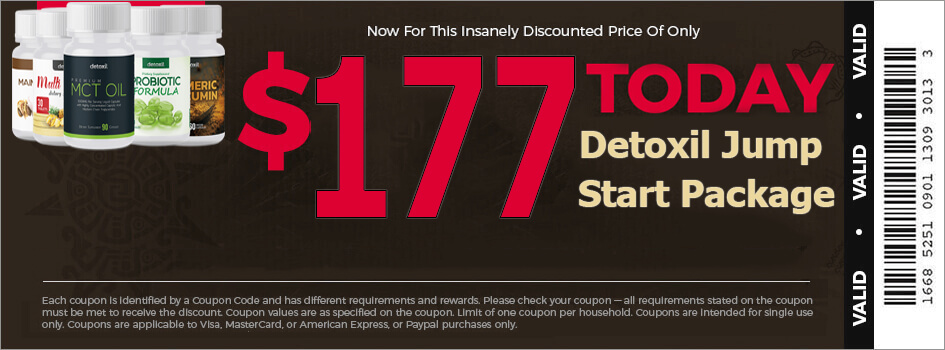 Each coupon is identified by a Coupon Code and has different requirements and rewards. Please check your coupon — all requirements stated on the coupon must be met to receive the discount. Coupon values are as specified on the coupon. Limit of one coupon per household. Coupons are intended for single use only. Coupons are applicable to Visa, MasterCard, or American Express, or Paypal purchases only. By accepting this coupon you agree to pay a periodical monthly investment of only $177mo. Coupons are redeemable only on Detoxil.com sites. At times, coupons may be limited to one specific site; please check your coupon to verify which site(s) the coupon applies to. Note: The following are the current Detoxil.com, and are subject to change. Pass on this offer